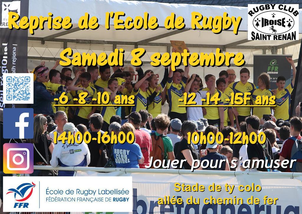 Il ne manquait plus que la rentrée de l'école de rugby pour démarrer définitivement la saison. L'équipe d'éducateurs et les membres du bureau sont heureux de tous vous retrouver samedi prochain. J'en profite pour souhaiter une très bonnes rentrée à tous nos chers écoliers, collégiens et lycéens.