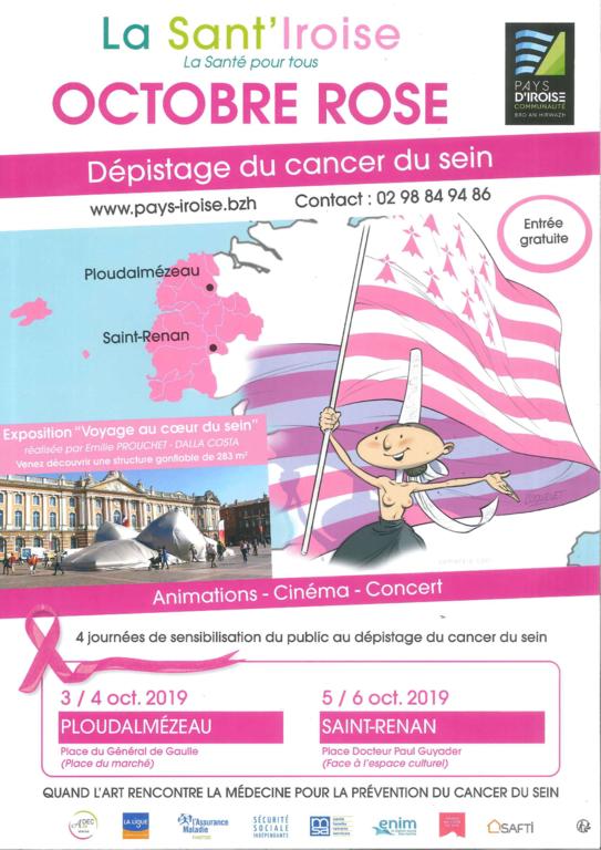 Dans le cadre de la campagne nationale "Octobre rose" et autour de Pays d'Iroise Communauté , nombre de partenaires (associations, professionnels de santé, milieux du soin et du médico-social...) au premier rang desquels la Ligue contre le cancer et l'Adec 29 (Association de dépistage des cancers en Finistère), tous se mobilisent en organisant 4 journées de sensibilisation au dépistage du cancer du sein. Et c'est une première en Bretagne : non seulement le public va pouvoir participer à des ateliers, ciné-débat, etc. mais il va aussi pouvoir déambuler dans un buste géant de 300 m² ! Contact : service Solidarités, 02 98 84 94 86, sylvie.michelier@ccpi.bzh |